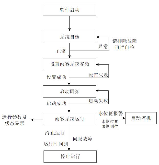 1)選擇雨量,設(shè)置持續(xù)時間,與PLC通信,控制造雨裝置運行;