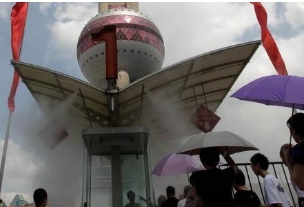 在盛夏,當(dāng)城市氣溫達(dá)到35以上時(shí),即使打著傘,戴著太陽(yáng)鏡,來自太陽(yáng)的直射和來自地面的反射,依然讓人感覺酷暑難當(dāng)。而在噴霧降溫系統(tǒng)的作用下,空氣溫度可降至25℃,達(dá)到人體的最佳溫度,所以即使置身炎熱室外,依然感到舒暢。