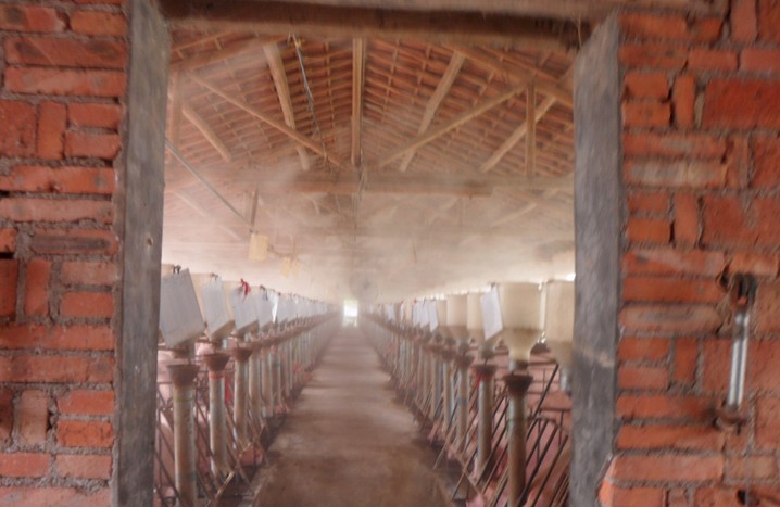 5.節(jié)省人力,創(chuàng)高利潤。經(jīng)試驗,在一幢長40、寬13的雙列式豬舍內(nèi)安裝噴霧降溫籠頭(每欄上方一只),使噴出的水成霧狀,降溫效果很好。白天使用,一般每間隔半小時開啟一次,每次持續(xù)時間為20分鐘左右。同時,豬舍一端安裝一只排風扇通風。前段時間,氣溫達到37以上的高溫日,白天舍內(nèi)最高氣溫降到35以下,早晨在30以下,工作人員從外面進入豬舍,有明顯涼爽的感覺。