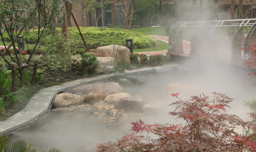 霧與水的結(jié)合一直就是最佳的造景方式之一,水是溫婉的、霧是飄渺的。水霧相繞就是一幅完美的畫卷,一份優(yōu)雅、一份寧靜,而水霧相繞中散發(fā)的負(fù)離子更增加了清新濕潤氣息. 公園水池人造霧造景技術(shù)問世以來,以其經(jīng)濟(jì)、高效、方便的特色,迅速在各個(gè)行業(yè)中廣泛地得到了使用。人工造霧設(shè)備是使常溫的水變成極細(xì)小的水粒,在空氣中彌漫,形成白色云霧。具有增濕、降溫、防塵、造景等調(diào)節(jié)治理、美化環(huán)境的功能。在景觀人造霧領(lǐng)域中,人工造霧體現(xiàn)著人類文化與自然的融合,滿足了人們期待回歸自然的愿望和對美的追求。冷霧設(shè)備對于旅游景點(diǎn)的開發(fā)與設(shè)計(jì)來說,具有極大的市場優(yōu)勢,能使游客產(chǎn)生吸引力,為旅游景點(diǎn)創(chuàng)造效益。此外它所產(chǎn)生的霧氣可隨風(fēng)飄移,與自然環(huán)境融為一體,更具觀賞性與趣味性,易綠冷霧可根據(jù)實(shí)際所需的效果隨意控制,廣泛應(yīng)用于園林景觀效果,人造霧以改善空氣質(zhì)量,美化環(huán)境為依托,以景觀、保濕、防塵、降溫、造景為目的,在自然園林、環(huán)境景觀方面應(yīng)用廣泛,如景區(qū)、廣場、公園、綠化工程、舞臺、連廊、休息亭、室內(nèi)外餐廳等各領(lǐng)域。當(dāng)微風(fēng)拂過,霧形上下騰涌,霧濃似云海般飄渺,云起云聚,霧淡如輕紗撫面,溫和柔美。人們不僅可以在遠(yuǎn)處觀賞,體會那若穩(wěn)若現(xiàn)的神秘之感,更可置身于的茫茫霧海中,呼吸其濕潤新鮮的空氣,神奇之處令人意趣無窮。