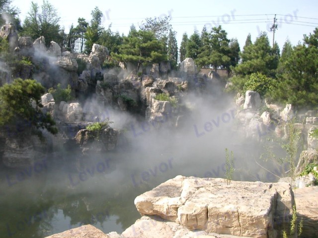 公園水池人造霧造景產(chǎn)品全方位多功能: 降溫、造景、加濕、防塵、防靜電、除臭、消毒、噴藥、防疫、驅(qū)蟲、驅(qū)蚊.