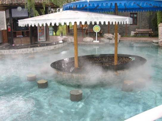 溫泉園林景觀造霧—種源于設(shè)備處理后的凈化水,通過高壓系統(tǒng)將極細(xì)微的水粒噴出,漂浮在空氣中,形成了酷似自然霧氣的濃縮??蓾M足現(xiàn)代人體驗自然、回歸自然的渴望。