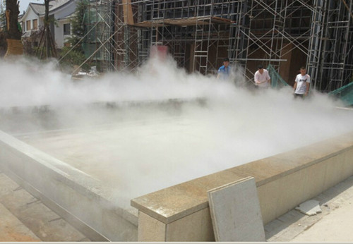 在一些功能齊全、高品質(zhì)的住宅小區(qū)里,流水與人造的平臺(tái)是非常普遍的組合,在這里霧起到了環(huán)境烘托的良好功能。流水、平臺(tái),霧的靈動(dòng)與飄逸渲染了一個(gè)幽雅的居住氛圍。