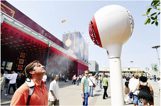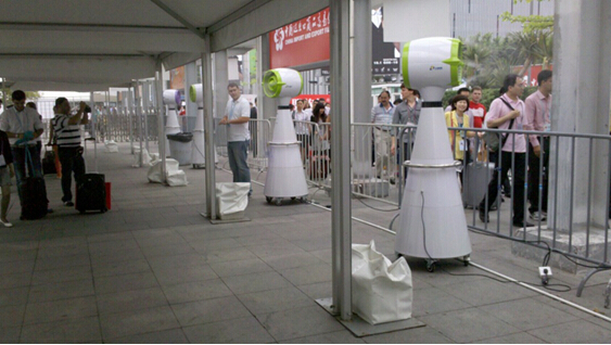車展會展降溫噴霧風扇可使夏日炎熱干燥的氣候,下降溫度7~10,一般可使溫度保持為30左右,控制灰塵、清潔空氣,并且成為一道靚麗的風景線。