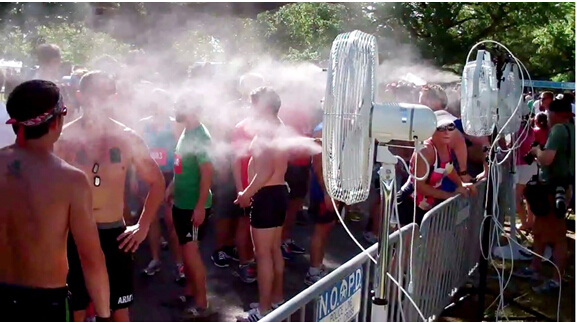 工廠戶外餐廳加濕降溫風(fēng)扇:  霧化降溫時(shí)應(yīng)用水對(duì)大自然氣候調(diào)節(jié)的原理采用汽化降溫的方式,水通過霧化降溫系統(tǒng)以極細(xì)微霧化狀態(tài)噴出,充分與空氣混和,去除空氣雜質(zhì),加速空氣流動(dòng),中和空氣中過量的正離子,增加負(fù)離子在空氣中的含量。水霧在汽化過程中吸收大量的熱量,從而達(dá)到快速降溫的作用。